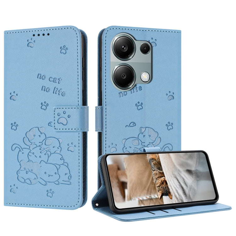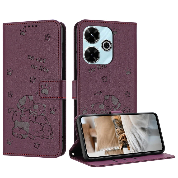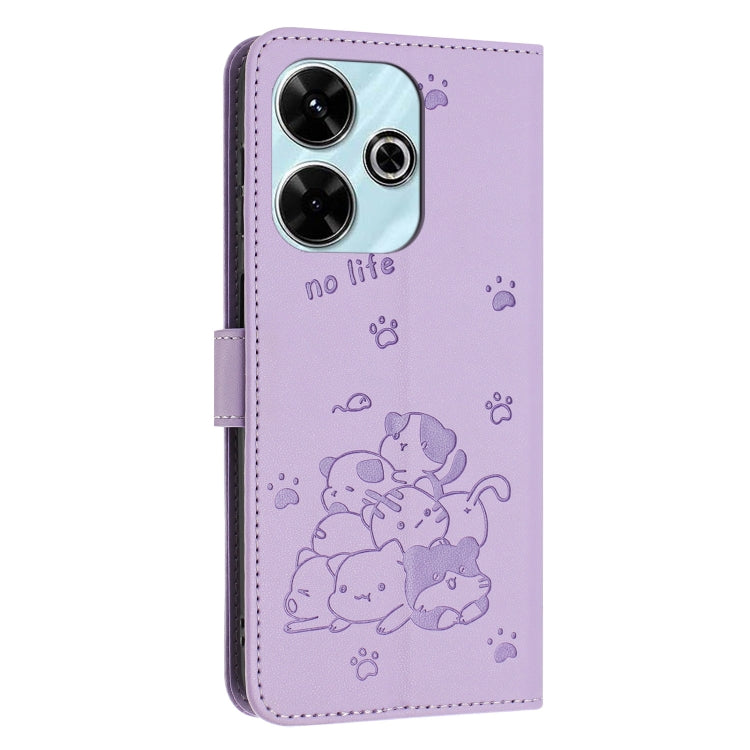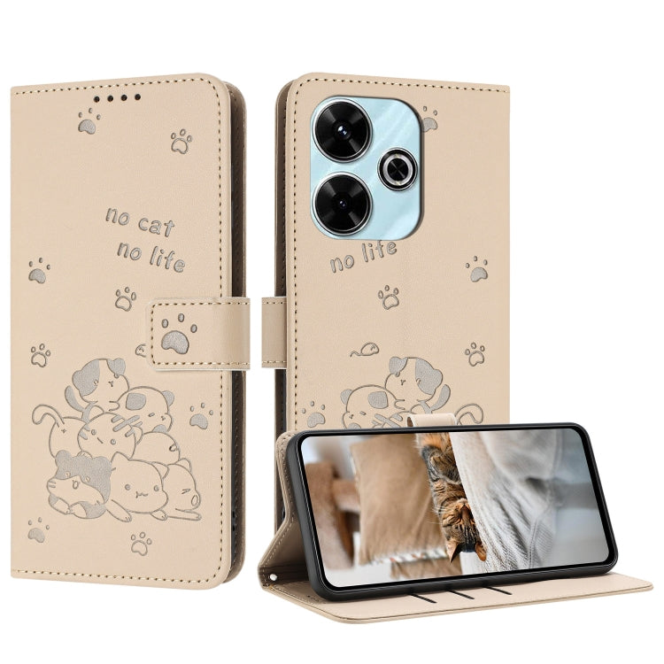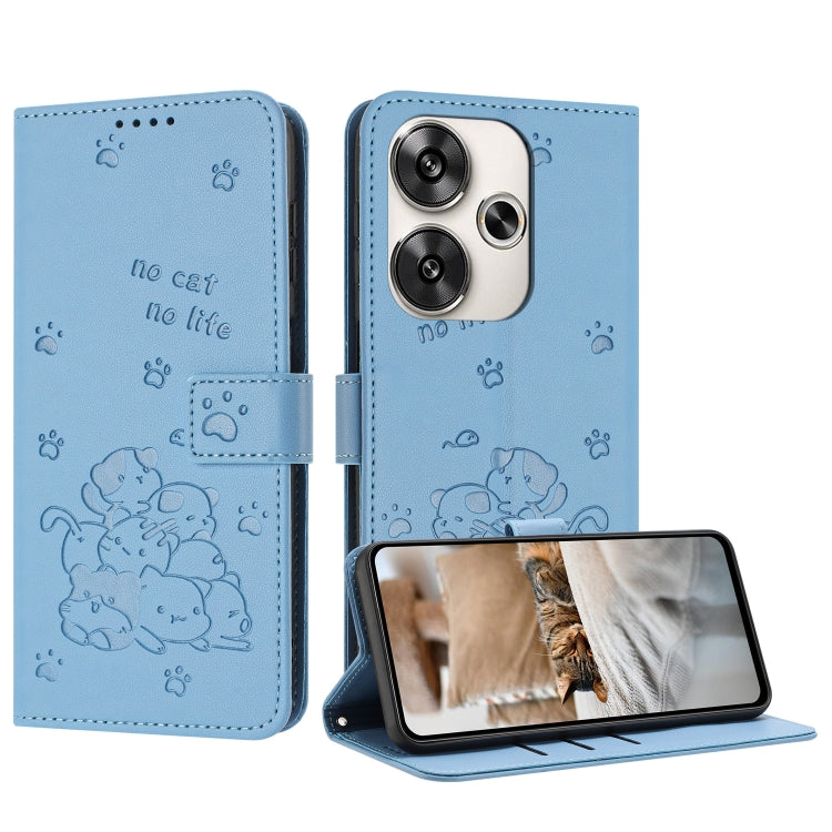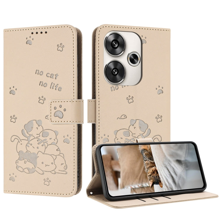 Embossed Kitten Phone Leather Case with Lanyard, For Xiaomi Poco M6 4G, For Xiaomi Poco F6, For Xiaomi Poco F6 Pro 5G, For Xiaomi Poco M6 Pro 4G