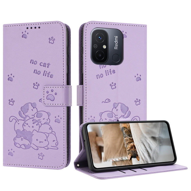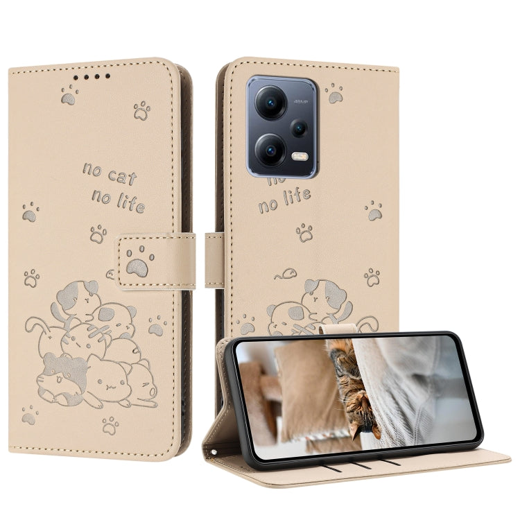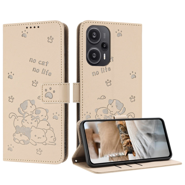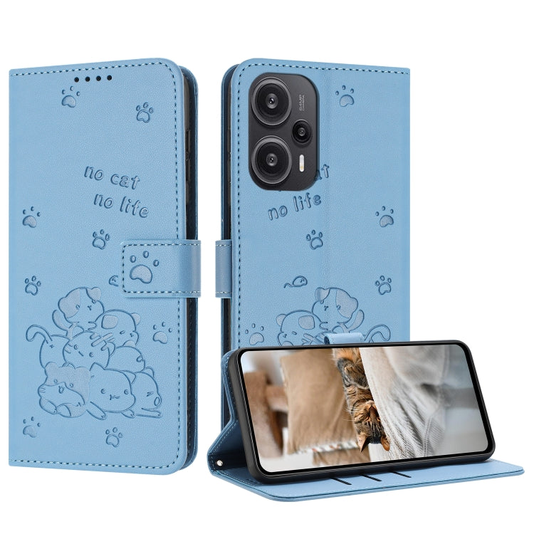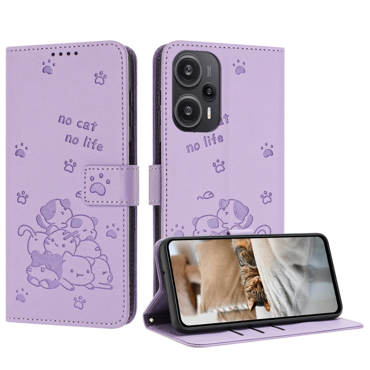 Embossed Kitten Phone Leather Case with Lanyard, For Xiaomi Poco M6 Pro 5G, For Xiaomi Poco F5, For Xiaomi Poco C55, For Xiaomi Poco X5 Pro 5G