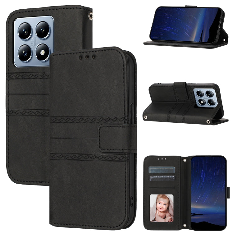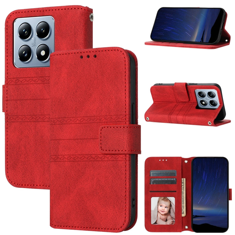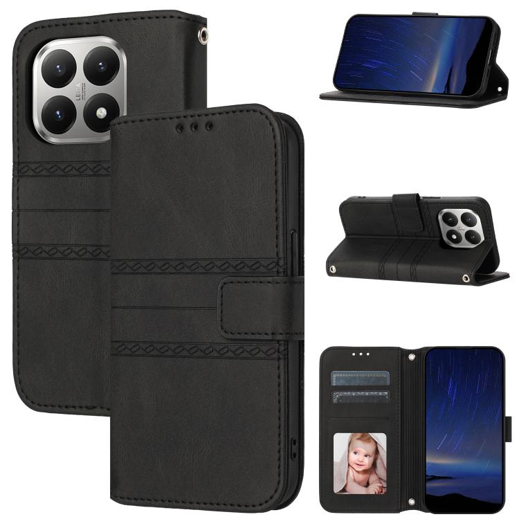 Embossed Stripes Skin Feel Leather Phone Case, For Xiaomi 15T Pro 5G, For Xiaomi 15T 5G, For Xiaomi 14T Pro, For Xiaomi 14T