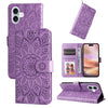 Embossed Sunflower Leather Phone Case, For iPhone 16e, For iPhone 16 Pro Max, For iPhone 16 Pro, For iPhone 16 Plus