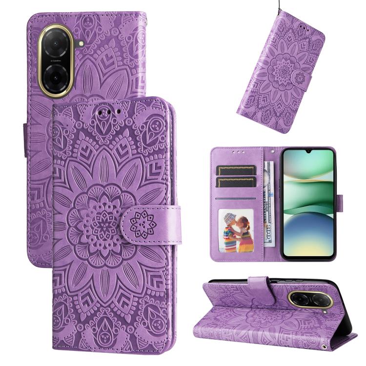 Embossed Sunflower Leather Phone Case, For Redmi 15C 5G / 4G Global 171mm / Poco C85 4G, For Redmi K80 Ultra, For Redmi Turbo 4 Pro / Xiaomi Poco F7, For Redmi A5 4G 173.3mm