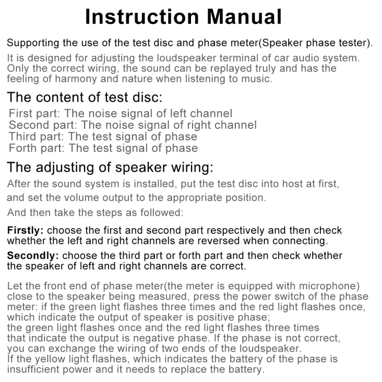 5. This phase meter can test all speakers of all car, such as small treble, door speakers, sub-woofer, etc.