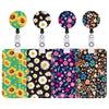 Floral Adjustable Retractable Card Holder Name Badge Work Bank Credit Card Sleeve, Black and White, Red Flower, Blue Flower, Green Sunflower