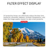6. UV filter: Suitable for shooting in the seaside, mountains, snowfields and open areas, etc. It can reduce the blue tone caused by ultraviolet rays. At the same time, for the camera, it can also eliminate the interference of ultraviolet rays on the camera, which helps to improve the effect of sharpness and color reproduction.