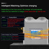 3. Intelligent matching, according to the input power, the charger will automatically identify and match the two batteries for simultaneous charging or one-by-one
