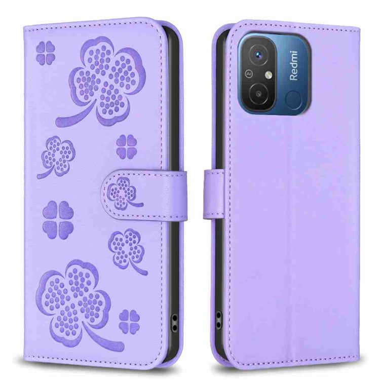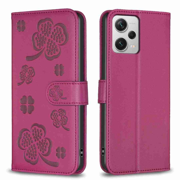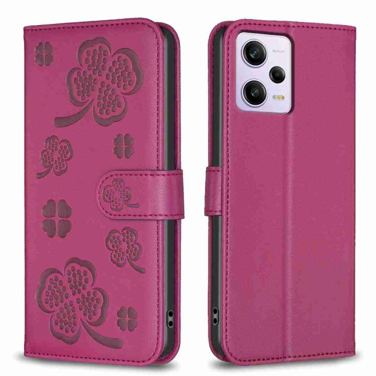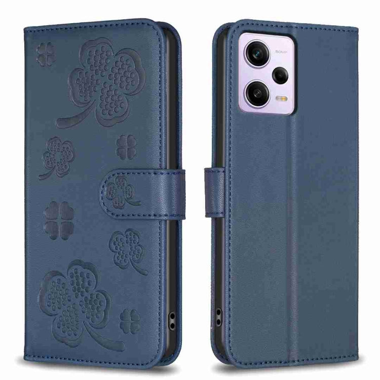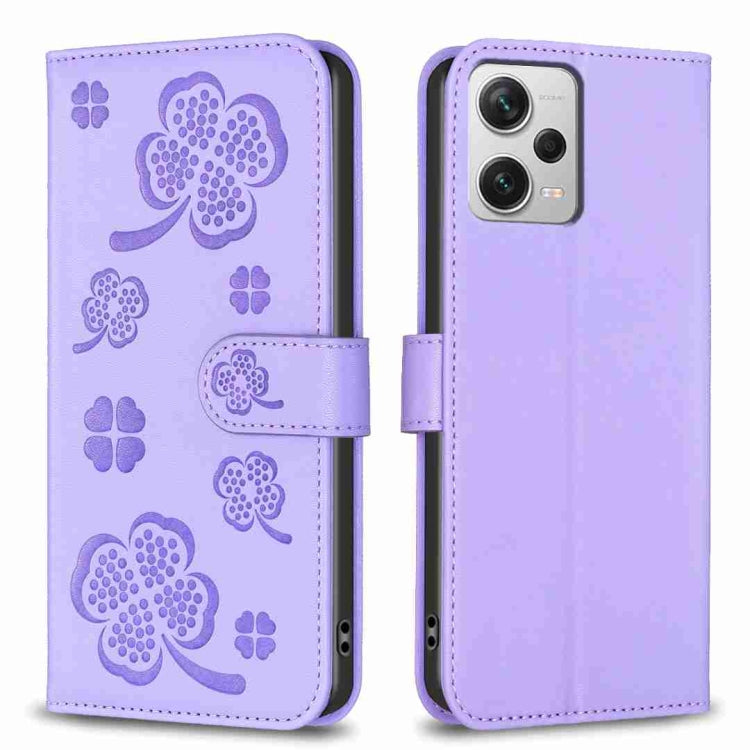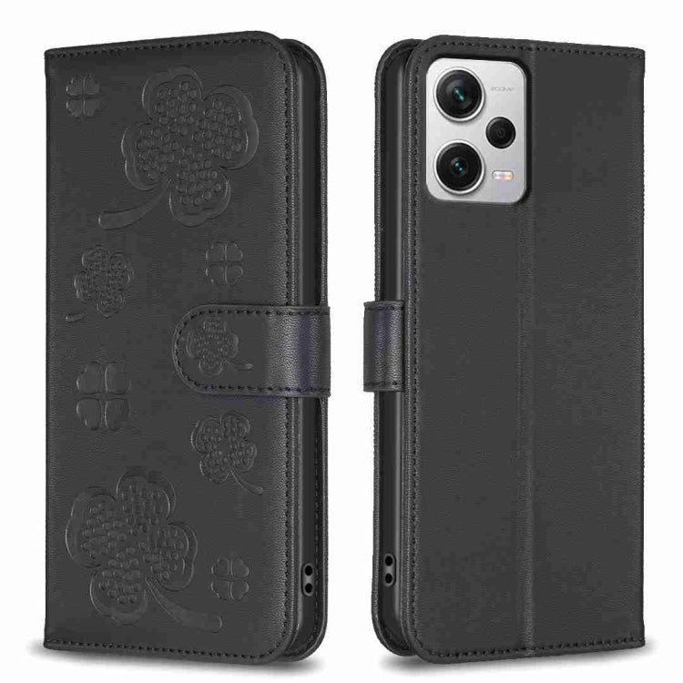 Four-leaf Embossed Leather Phone Case, For Xiaomi Poco C55 / Redmi 12C, For Xiaomi Redmi Note 12 Pro+ 5G Global, For Xiaomi Redmi Note 12 Pro 5G Global, For Xiaomi Redmi Note 12 5G Global