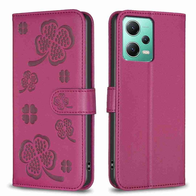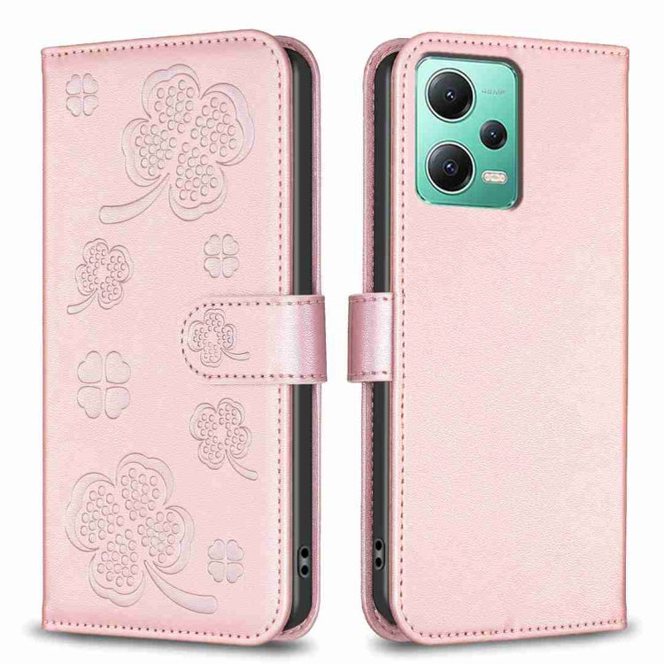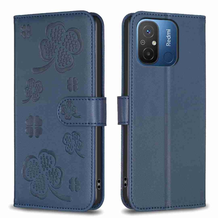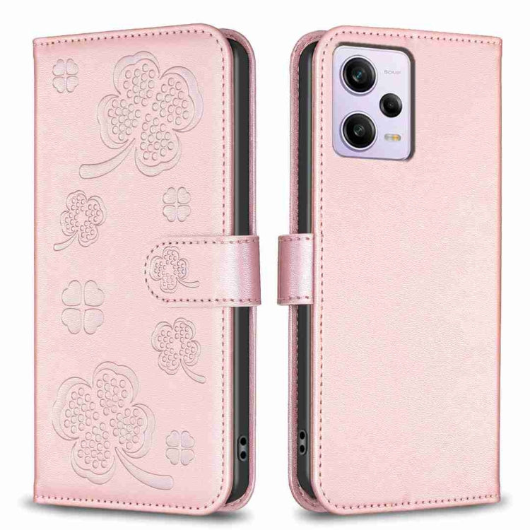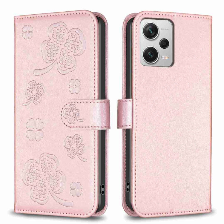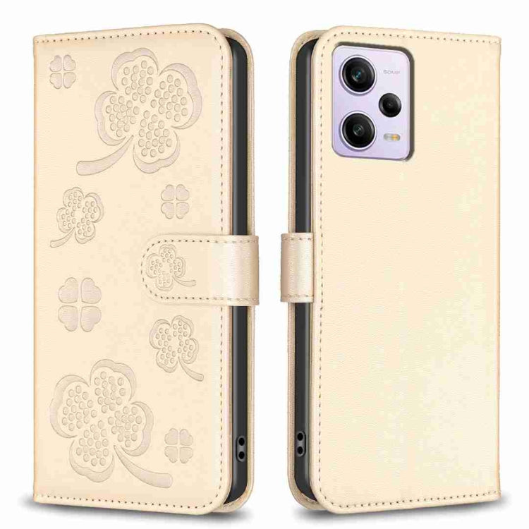 Four-leaf Embossed Leather Phone Case, For Xiaomi Poco C55 / Redmi 12C, For Xiaomi Redmi Note 12 Pro+ 5G Global, For Xiaomi Redmi Note 12 Pro 5G Global, For Xiaomi Redmi Note 12 5G Global
