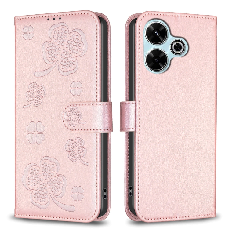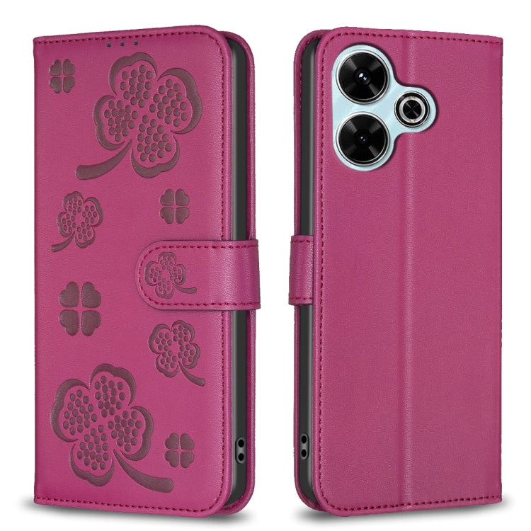 Four-leaf Embossed Leather Phone Case, For Xiaomi Poco M6 4G / Redmi 13 4G, For Xiaomi Redmi A3, For Xiaomi Redmi Note 13 Pro 4G Global, For Xiaomi Redmi Note 13 4G Global