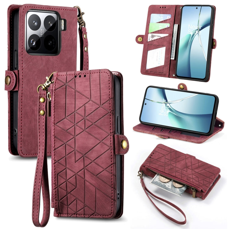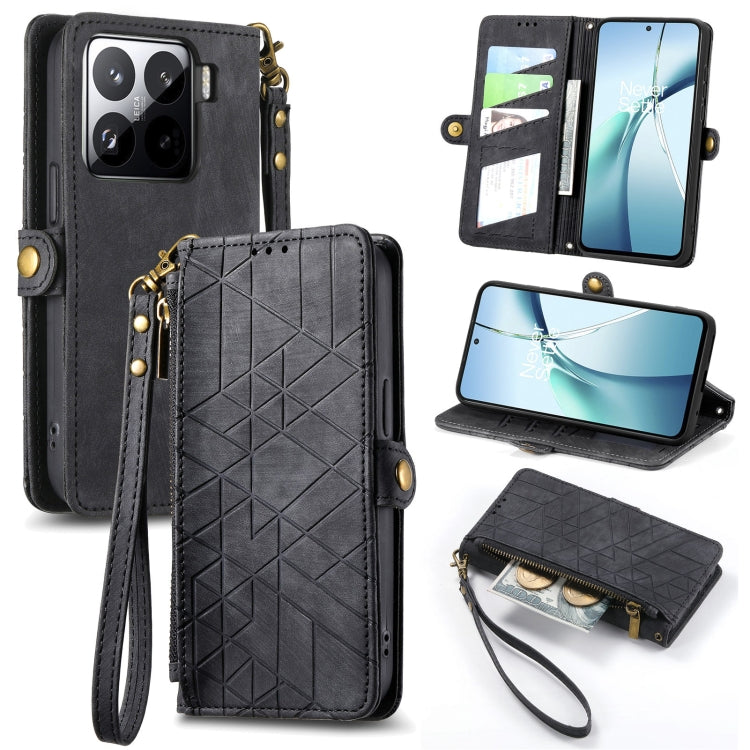 Geometric Zipper Wallet Side Buckle Leather Phone Case, For Xiaomi 15 Pro, For Xiaomi 15, For Xiaomi Redmi Note 14 5G, For Xiaomi Redmi Note 14 Pro+ 5G