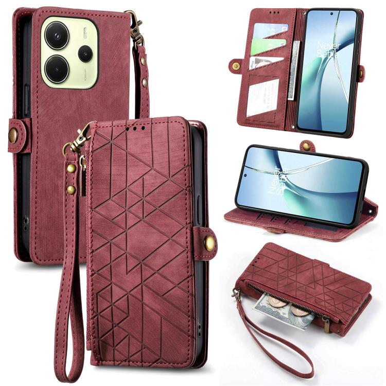 Geometric Zipper Wallet Side Buckle Leather Phone Case, For Xiaomi 15 Ultra, For Redmi Turbo 4, For Xiaomi Poco X7 Pro, For Redmi Note 14 4G 163.25mm