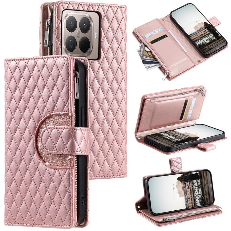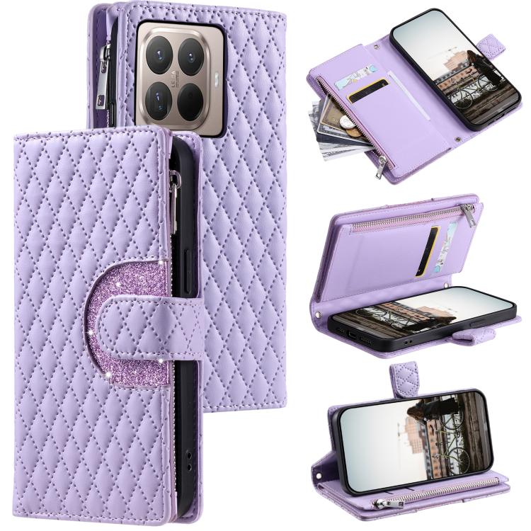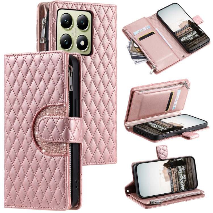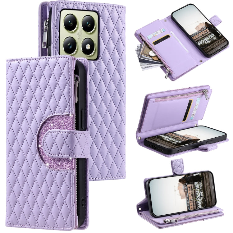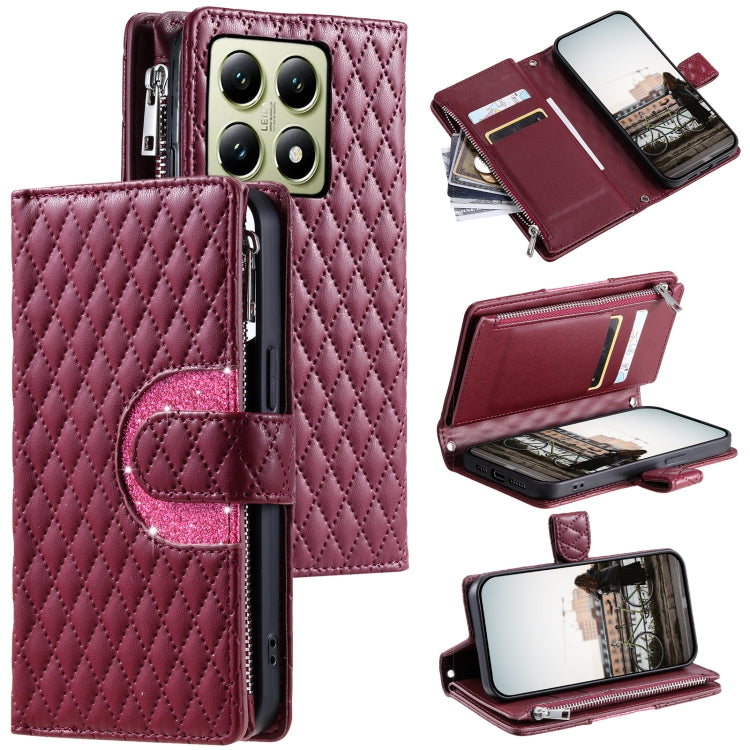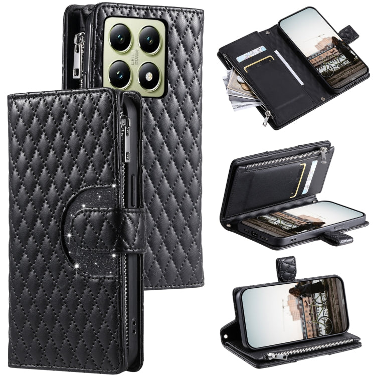Glitter Lattice Zipper Wallet Leather Phone Case, For Xiaomi 15T Pro, For Xiaomi 14T Pro, For Xiaomi 14T