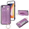 Glitter Powder PU+TPU Shockproof Protective Case with Holder & Card Slots & Wrist Strap, For iPhone 6 / 6s, For iPhone 6 Plus / 6s Plus, For iPhone SE 2022 / SE 2020 / 8 / 7, For iPhone 8 Plus / 7 Plus, For iPhone 11, For iPhone 11 Pro