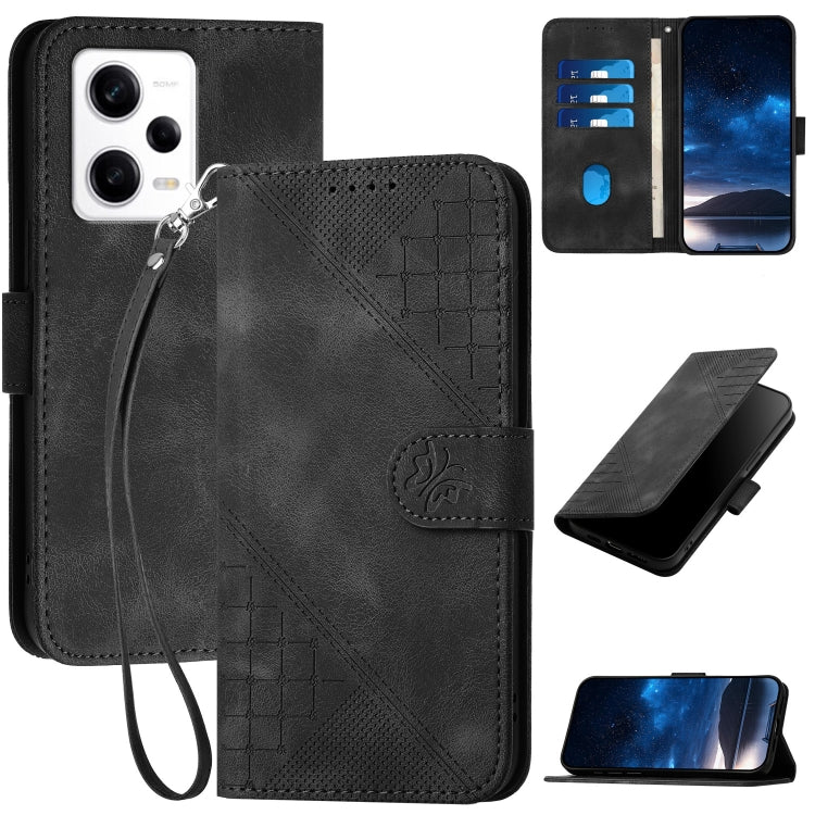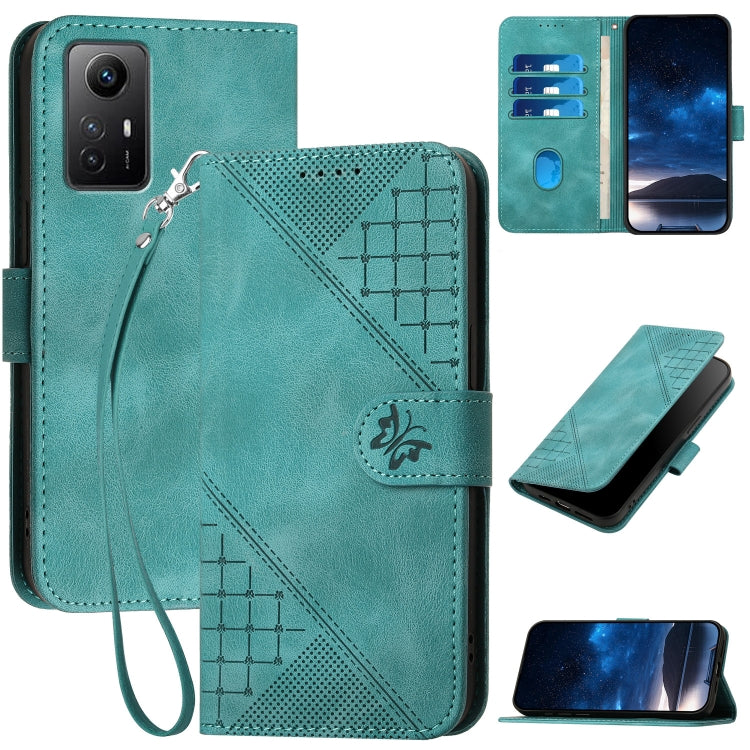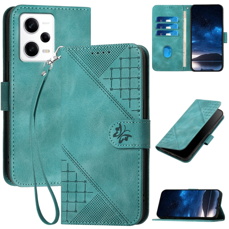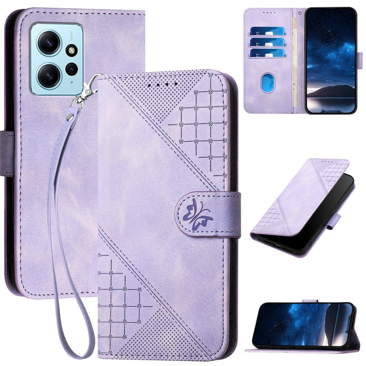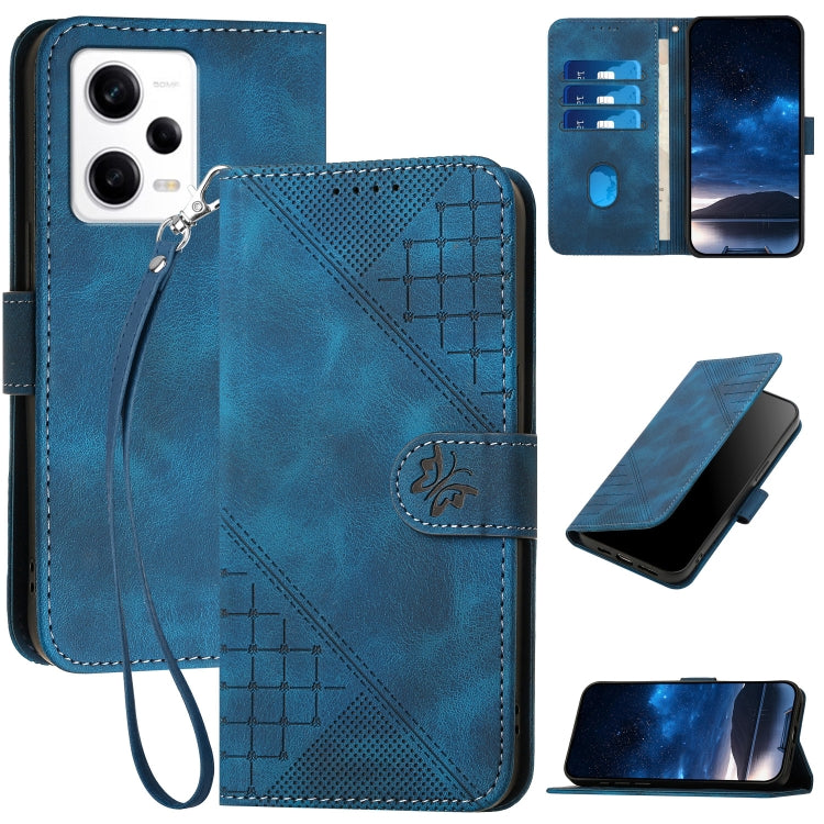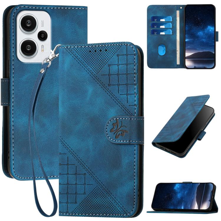 Grid Butterfly Embossed Pattern Leather Phone Case with Lanyard, For Redmi Note 12 Turbo / Xiaomi Poco F5, For Redmi Note 12s, For Redmi Note 12 Pro, For Redmi Note 12 4G