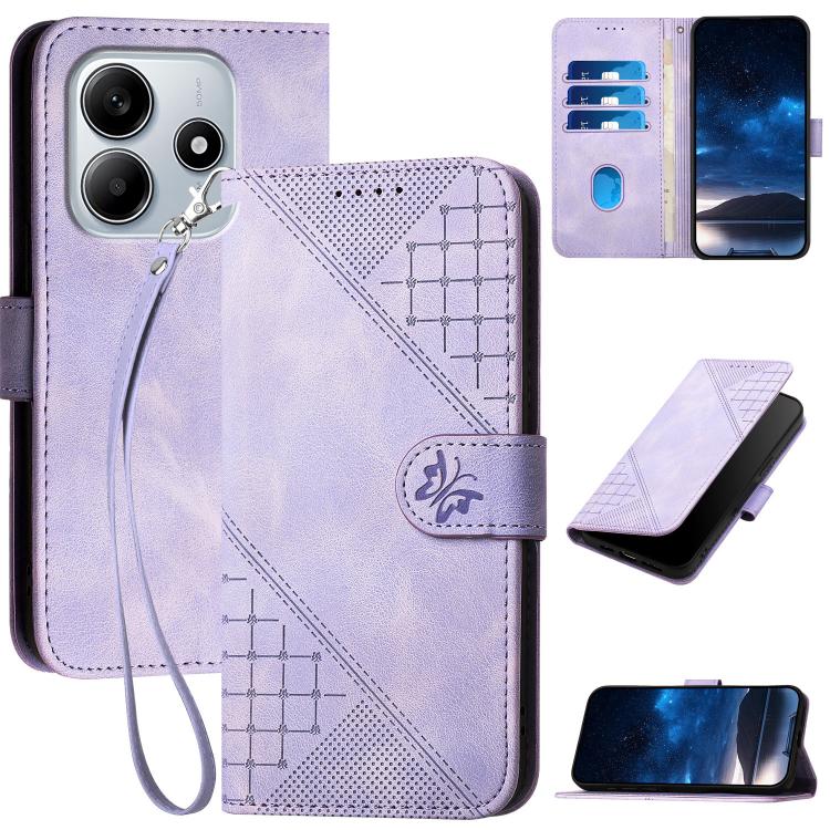 Grid Butterfly Embossed Pattern Leather Phone Case with Lanyard, For Redmi Note 14 4G 164.84mm, For Redmi Turbo 4 / Xiaomi Poco X7 Pro, For Redmi Note 14 Pro 4G, For Redmi Note 14 4G 163.25mm