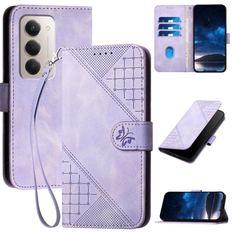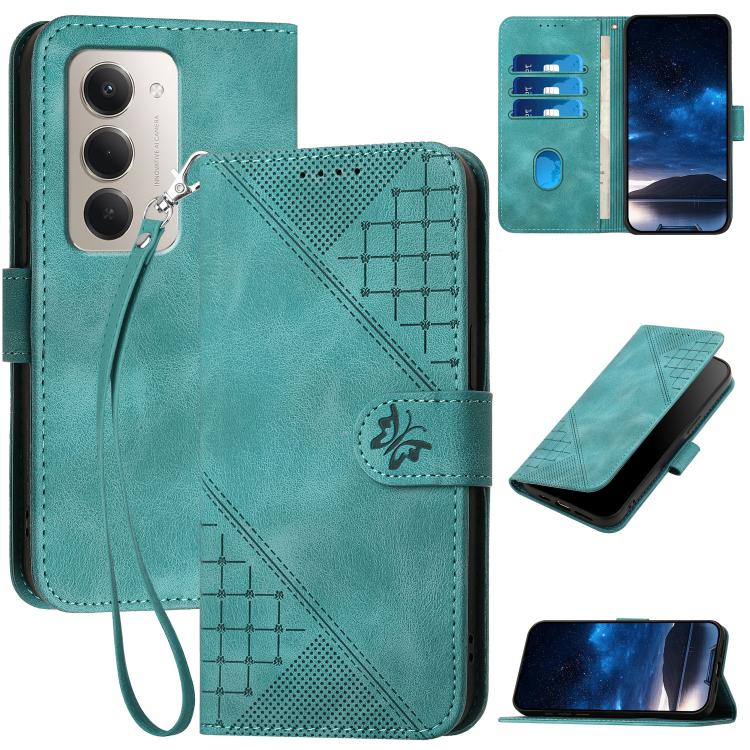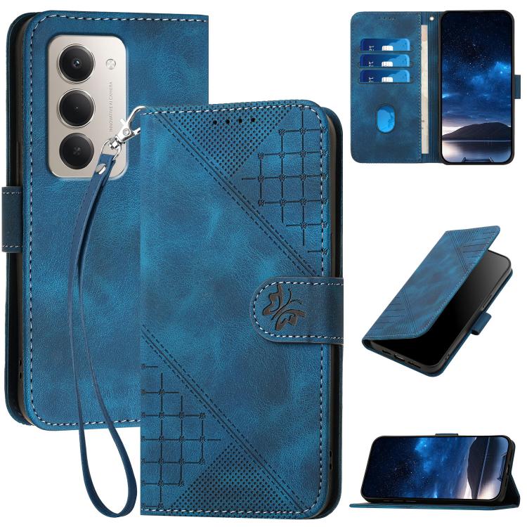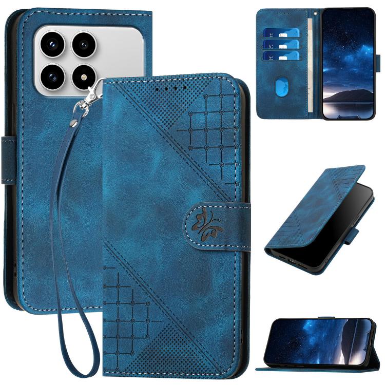 Grid Butterfly Embossed Pattern Leather Phone Case with Lanyard, For Redmi Note 15 4G Global 164mm, For Redmi K90 / Xiaomi Poco F8 Pro 5G, For Redmi 15 5G Global / 15 4G SEA 169.5mm, For Redmi 15 5G / 4G EU 171mm