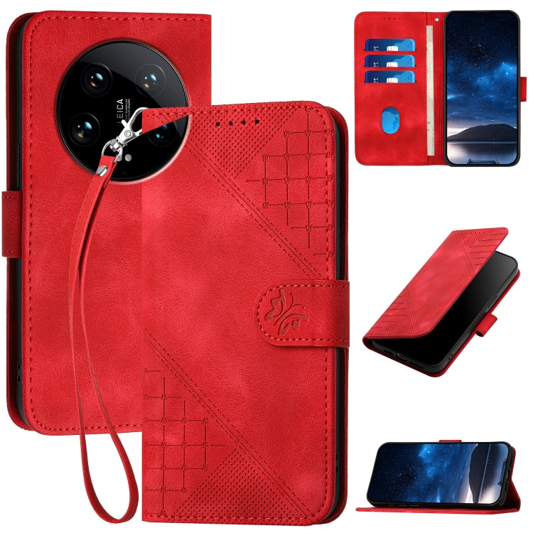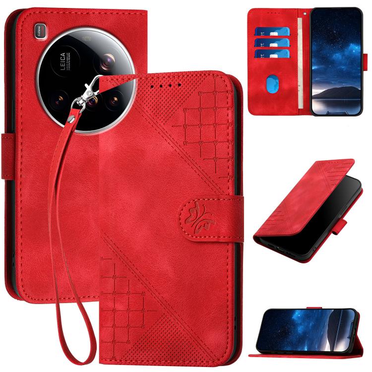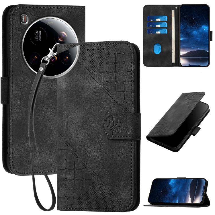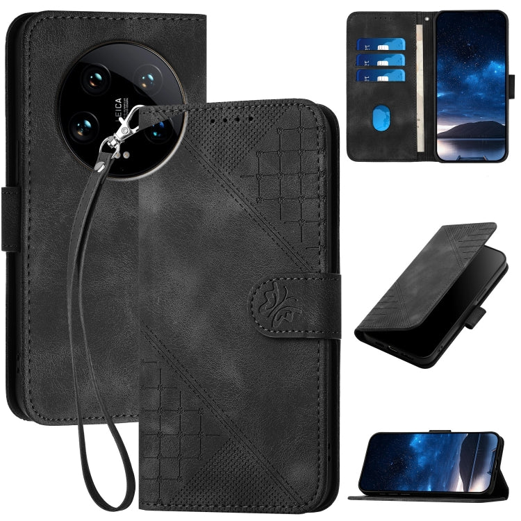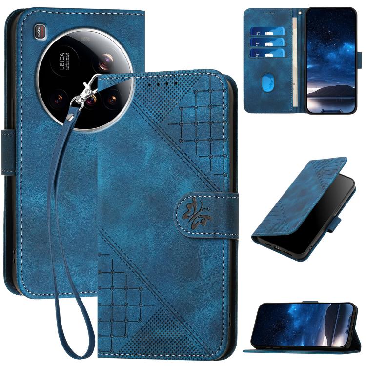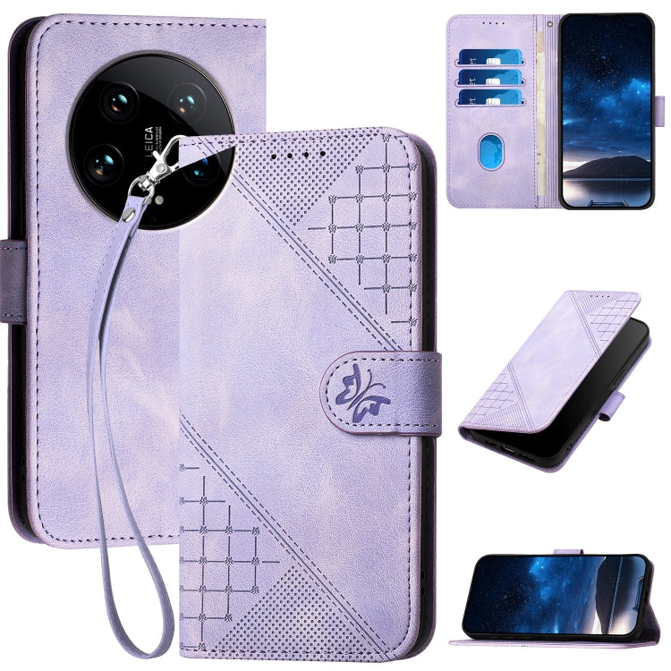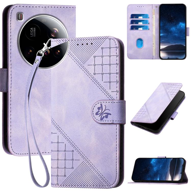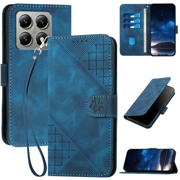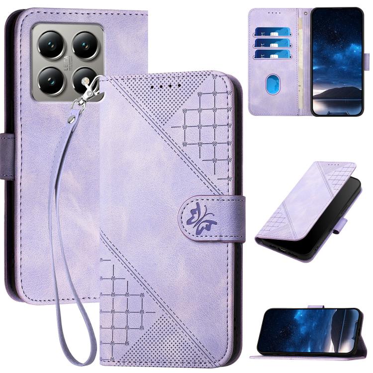 Grid Butterfly Embossed Pattern Leather Phone Case with Lanyard, For Xiaomi 15T Pro 5G, For Xiaomi 15T 5G, For Xiaomi 15 Ultra, For Xiaomi 14 Ultra