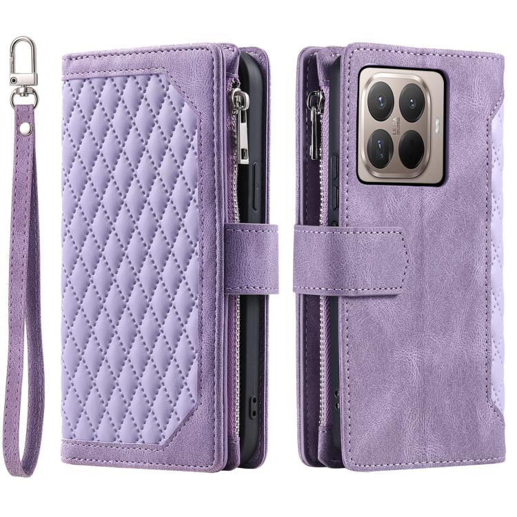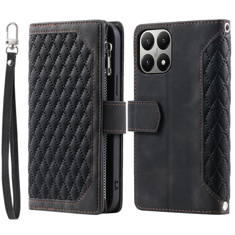 Grid Texture Zipper Leather Phone Case with Lanyard, For Xiaomi 15T Pro, For Xiaomi 15T, For Xiaomi 15 Pro, For Xiaomi 15