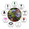 -10m kit: 4/7mm tube x 10m, quick connector x 1, 46-point nipple x 1, eight-hole dripper x 10, 3-way tee x 10, fixing bracket x 10, teflon tape x 1 pc, straight x 2 pcs, end cap x 1