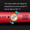 4. Intelligent constant temperature control, stop heating after the soldering iron reaches the specified temperature. If the temperature of the soldering iron drops, the chip will sense the temperature again and then keep the temperature constant to the specified temperature.