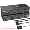 This USB & HDMI dual monitor KVM switch can control 2 (or 3) desktops or laptops with 1 set of wired or wireless keyboard, mouse and 2 monitors. Support extended display model or mirror display model. It is the best KVM switch to improve your productivity and make your workspace tidier, also a premium choice for work and home.
