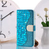 Laser Glitter Powder Matching Crocodile Texture Horizontal Flip Leather Case with Card Slots & Holder & Wallet