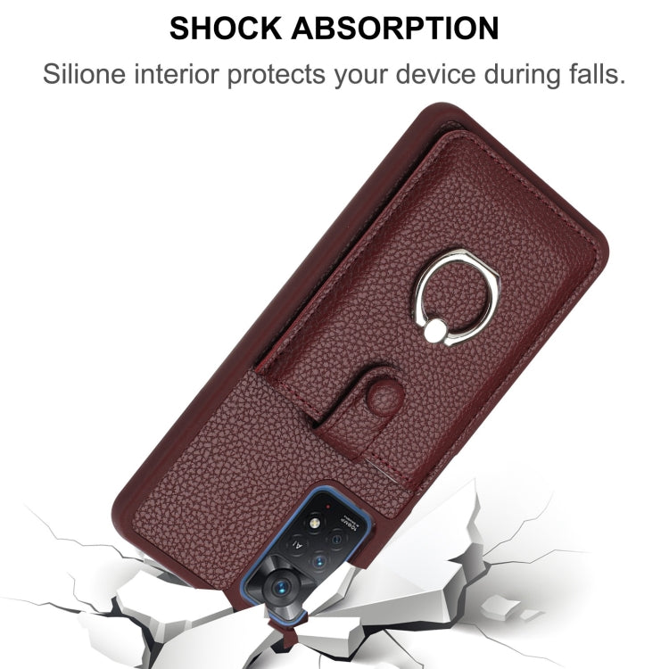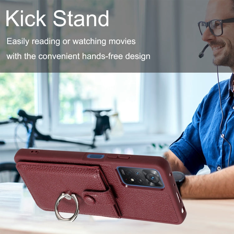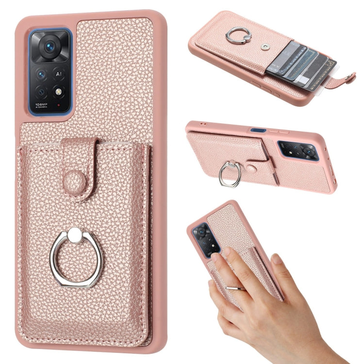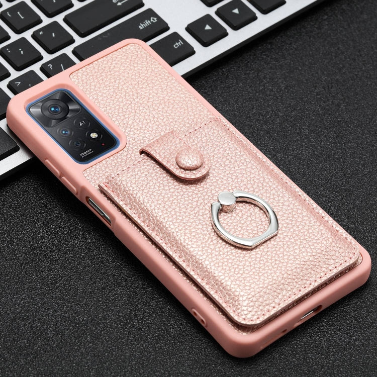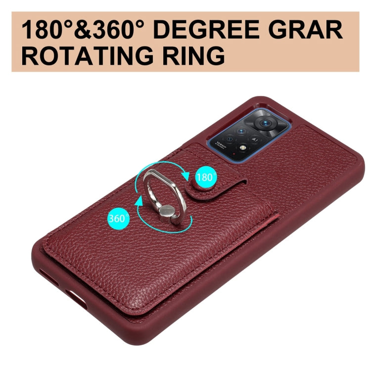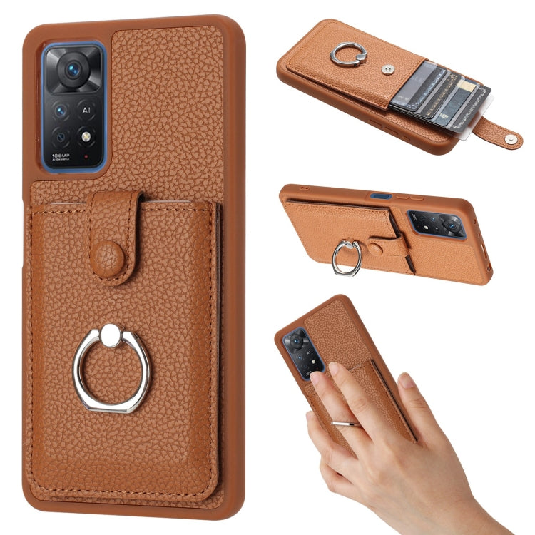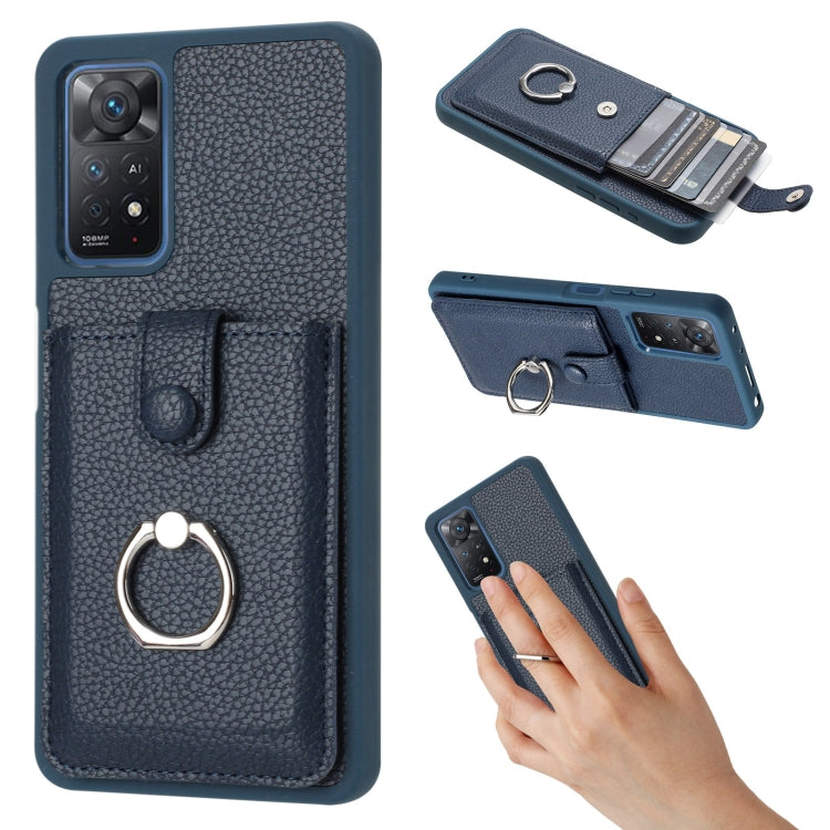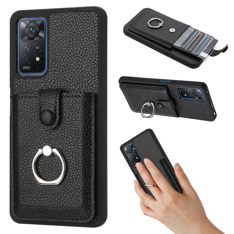 Litchi Texture Drawing Card Bag Ring Holder Phone Case, For Redmi Note 11 Pro 4G
