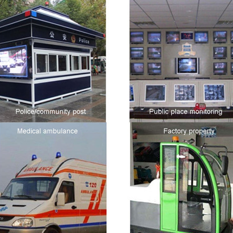 4. Scope of application: suitable for school buses, warning cars, neighborhood kiosks, public places monitoring, medical emergency vehicles, factories and properties, etc.