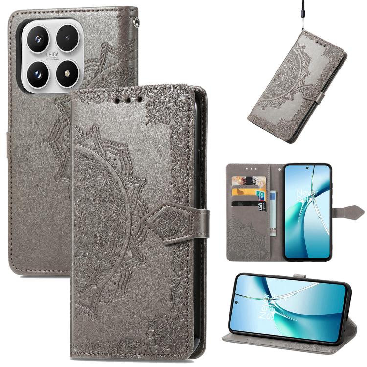 Mandala Flower Embossed Leather Phone Case, For Xiaomi 17 Pro Max, For Xiaomi 17 Pro, For Xiaomi 17, For Xiaomi Poco M7 4G 169mm