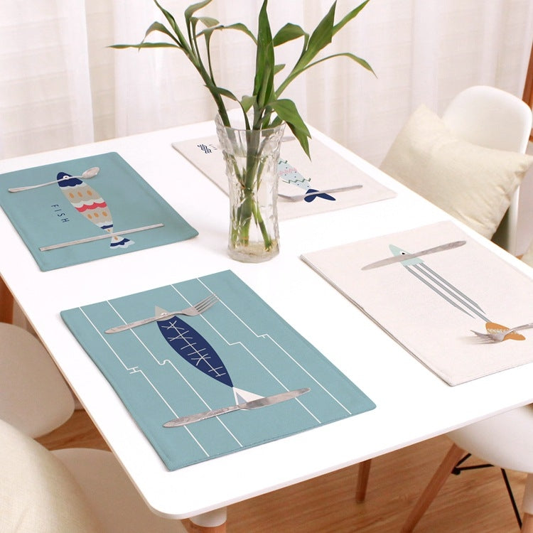 Mediterranean Simple Fresh Geometric Placemat Potholder Table Mat, 2 PCS Linen Single Side, Cotton And Linen Single Side, Cotton And Linen Double Layer Plus Anti-slip Point