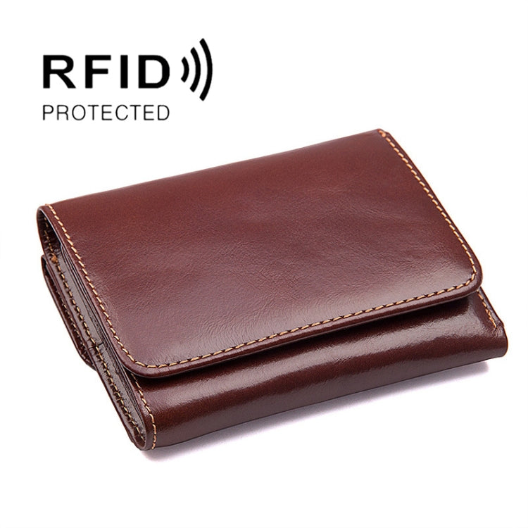 Men Casual Retro RFID Blocking Anti-Scanning Cowhide Leather Short Wallet, Coffee, Chocolate Color, Maroon