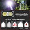 6. Gear: Main light switch (five gears): 2xLED strong light - 2xLED weak light - 2xLED SOS - double-click 2xLED super strong light - long press 2xLED fast flash