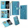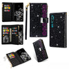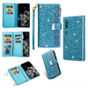 Multi-card Slots Starry Sky Laser Carving Glitter Zipper Horizontal Flip Leather Case with Holder & Wallet & Lanyard