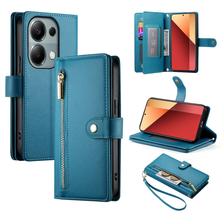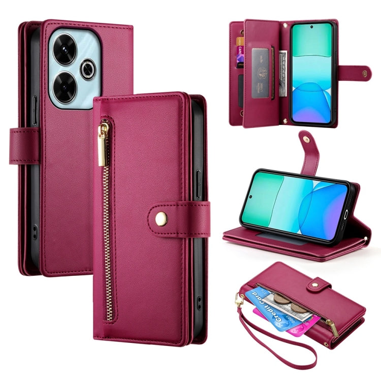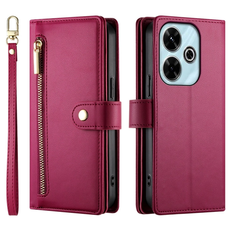 Nine Card-slot Zipper Wallet Bag Leather Phone Case, For Redmi 13, For Redmi Turbo 3, For Redmi Note 13 Pro 4G / Xiaomi Poco M6 Pro, For Redmi A3