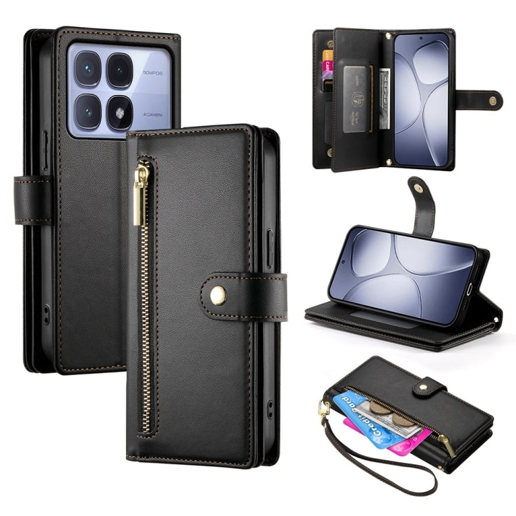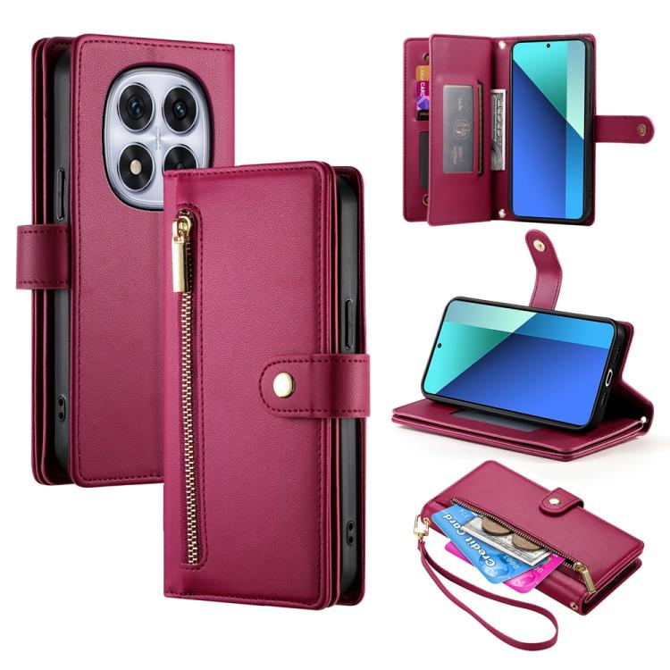 Nine Card-slot Zipper Wallet Bag Leather Phone Case, For Redmi Note 14 Pro 4G, For Redmi Note 14 4G 163.25mm Global, For Redmi 14C 4G, For Redmi K70 Ultra