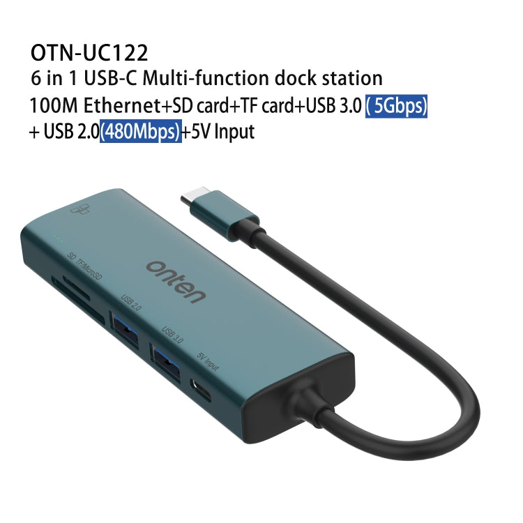 Onten UC122 6 in 1 USB-C / Type-C to SD + TF Card + USB 3.0 HUB with 5V Input & 100Mbps Network Card