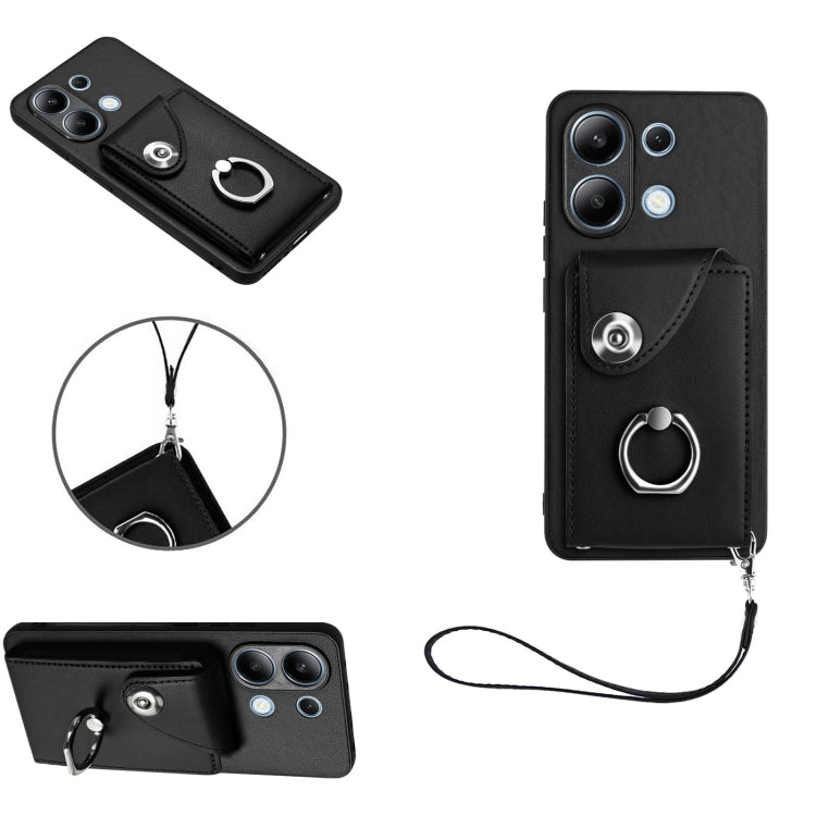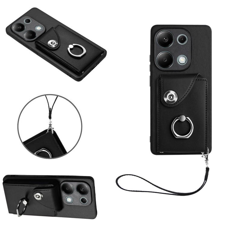 Organ Card Bag Ring Holder PU Phone Case with Lanyard, For Xiaomi Redmi A3 4G, For Xiaomi Redmi Note 13 Pro 4G Global, For Xiaomi Redmi Note 13 4G Global, For Xiaomi Redmi 13C 5G / Redmi 13R