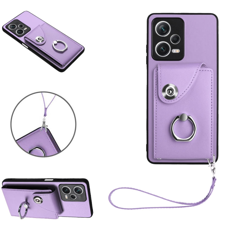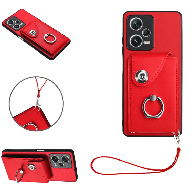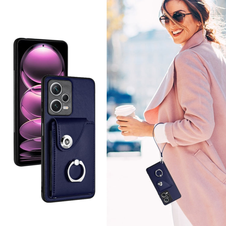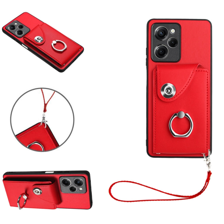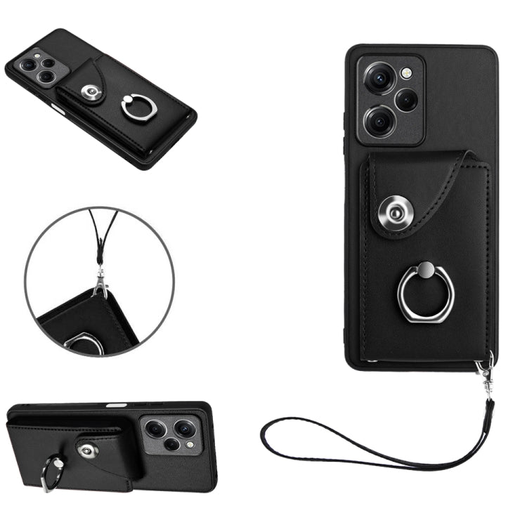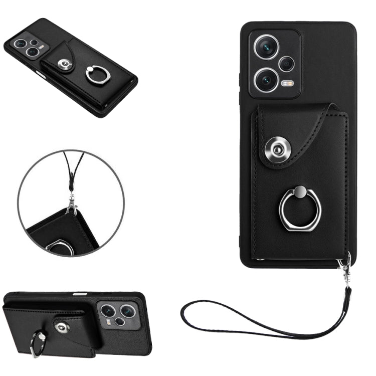 Organ Card Bag Ring Holder PU Phone Case with Lanyard, For Xiaomi Redmi Note 12 Pro+ 5G Global, For Xiaomi Redmi Note 12 Pro 5G Global, For Xiaomi Poco X5 Pro/Redmi Note 12 Pro Speed, For Xiaomi Poco X5/Redmi Note 12 5G Global