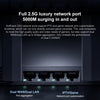6. Machine interface: 4 x 10/100/1000/2500M adaptive WAN/LAN port, 1 x USB 3.0 interface, 7 LED indicator lights (SYSTEM indicator lights x 1, INTERNET indicator light x 1, Mesh port light x 4, AloT status light x 1), system reset button/Mesh button x 1, power input interface x 1