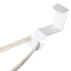 5. The setup consists of a narrow strip of canvas and a set of clips to mount on either end of your desk that hold small lengths of rope. When it's fully installed you're free to adjust the height between WORK and REST mode.