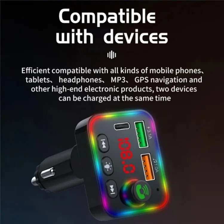 P4 Car FM Transmitter PD Fast Charger Car Charger Support U Disk Bluetooth Hands-free Calling, P4