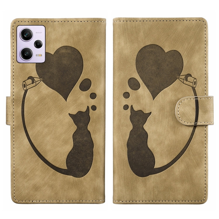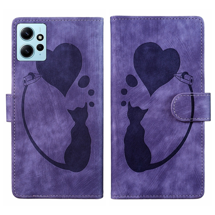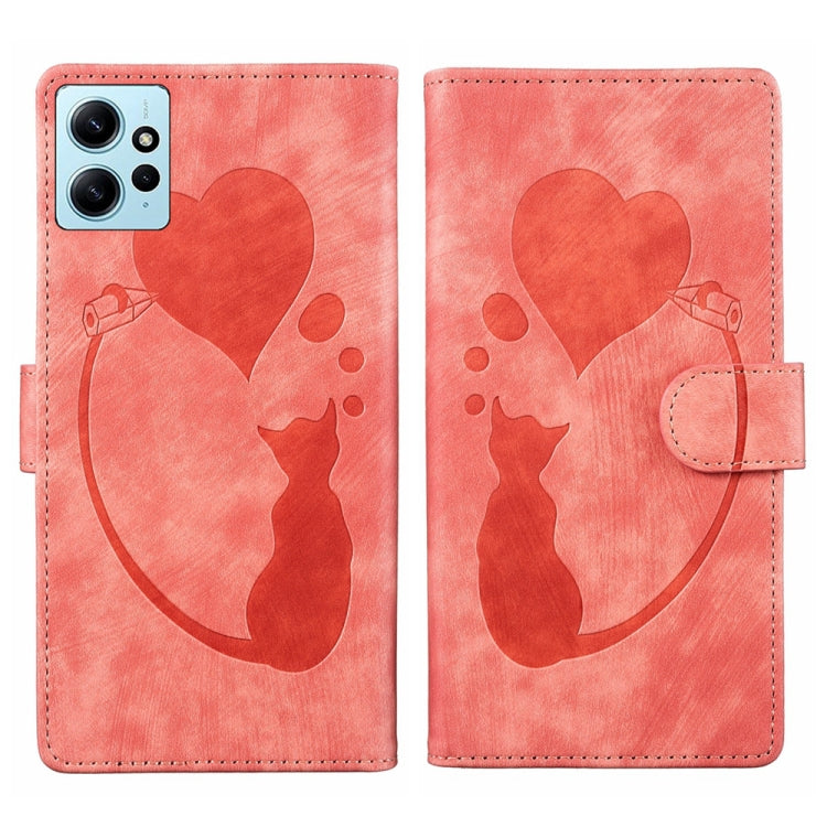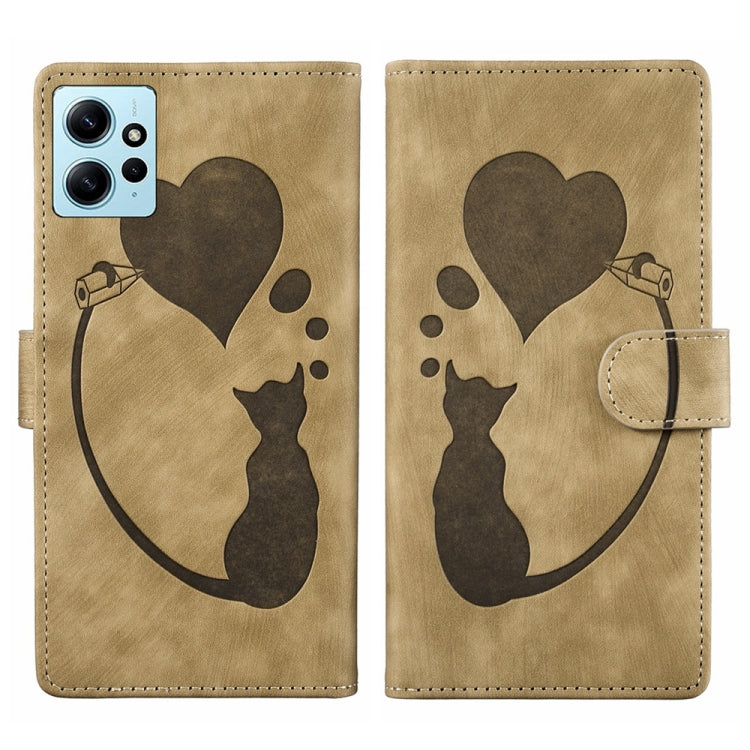 Pen Heart Cat Embossed Leather Phone Case, For Xiaomi Redmi 12, For Xiaomi Redmi Note 11S 4G / Note 12S, For Xiaomi Redmi Note 12 4G Global, For Xiaomi Redmi Note 12 Pro 5G Global