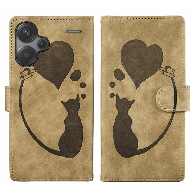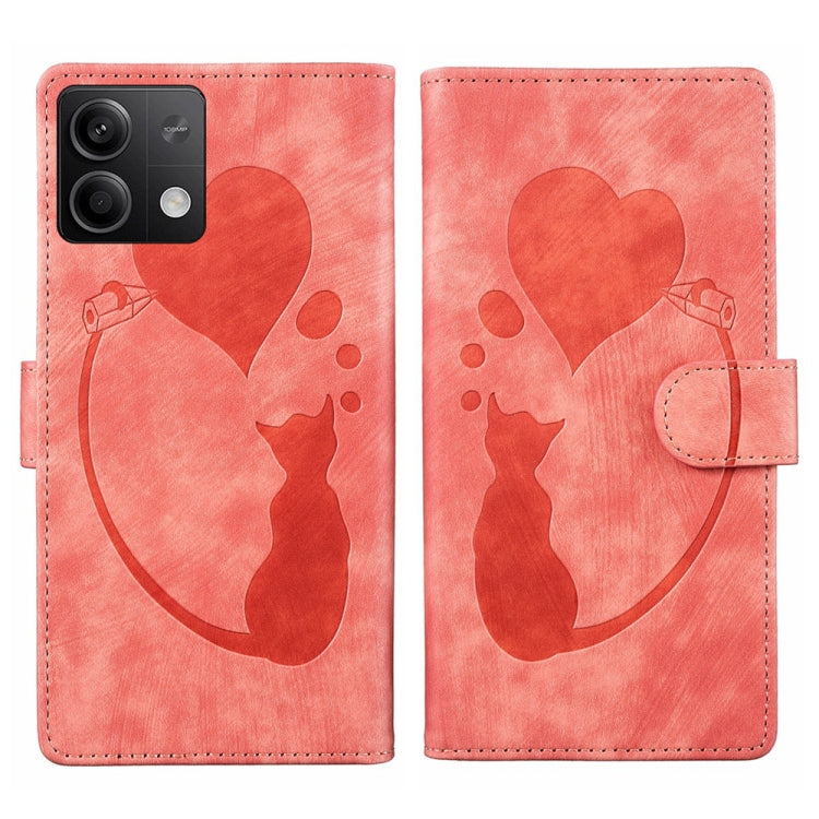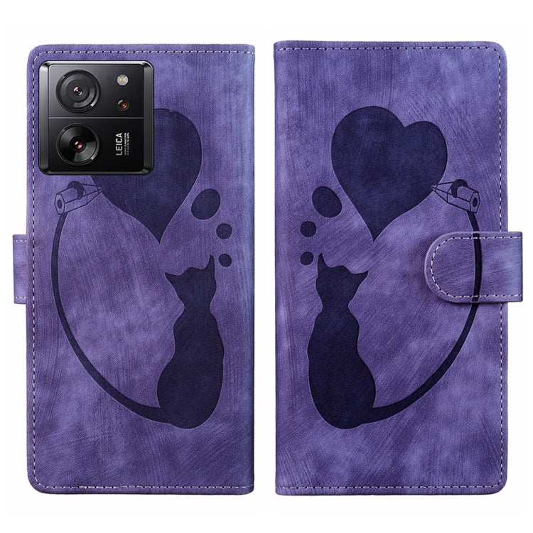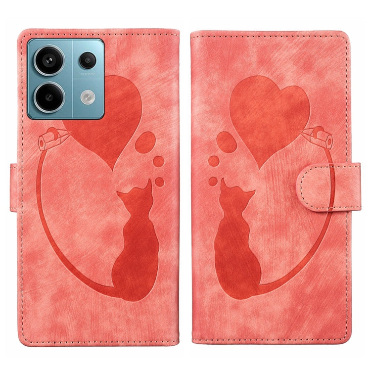 Pen Heart Cat Embossed Leather Phone Case, For Xiaomi Redmi Note 13 5G, For Xiaomi Redmi Note 13 Pro+, For Xiaomi Redmi Note 13 Pro 5G, For Xiaomi 13T / 13T Pro