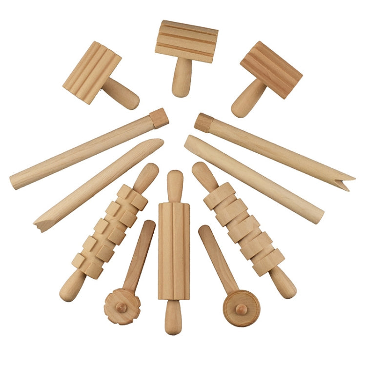Plasticine Accessory DIY Slime Play Dough Wooden Tools Roller Stamp Rolling Pin Spoon, 12 In 1