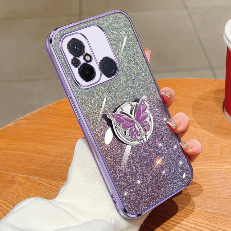 Plated Gradient Glitter Butterfly Holder TPU Phone Case, For Redmi 12, For Redmi 12C, For Redmi K60 / K60 Pro, For Redmi K60E