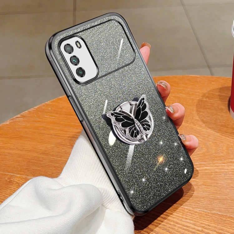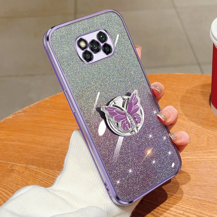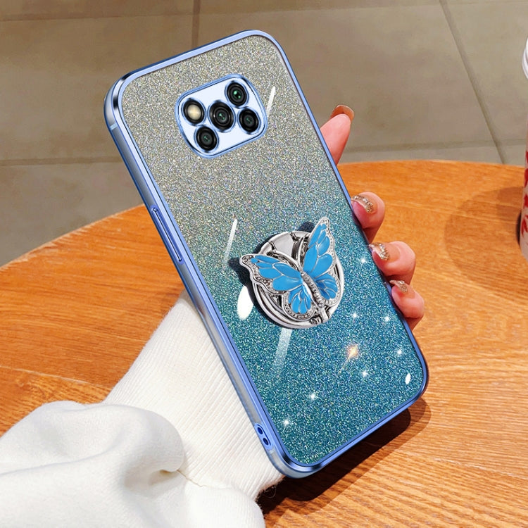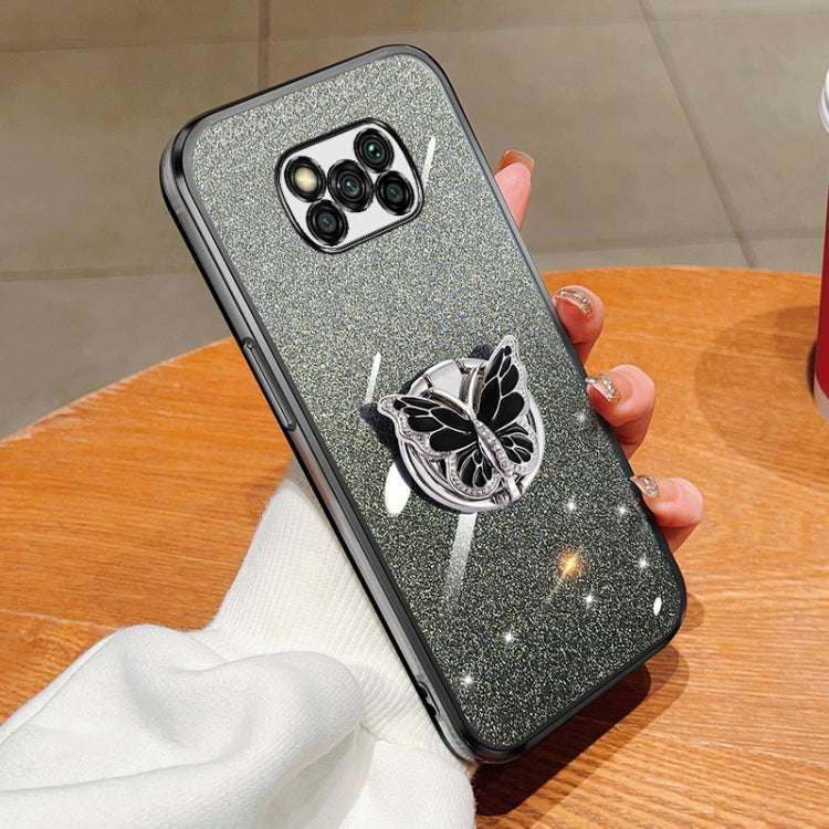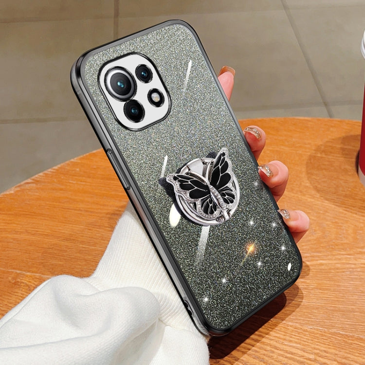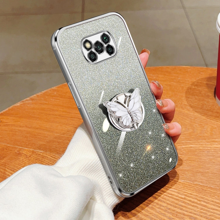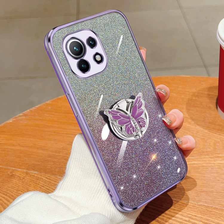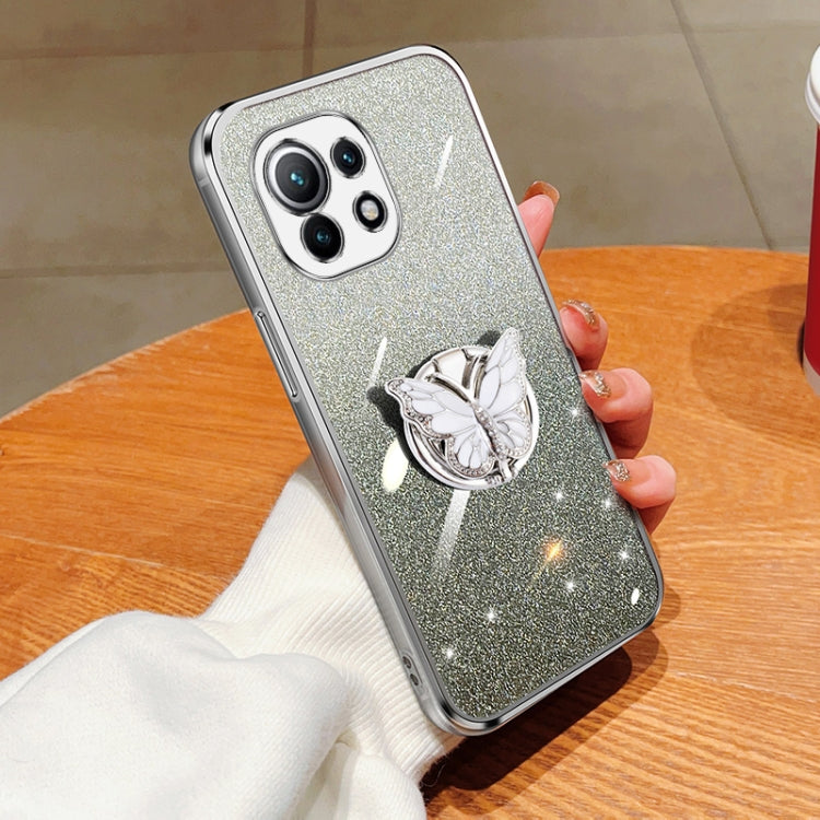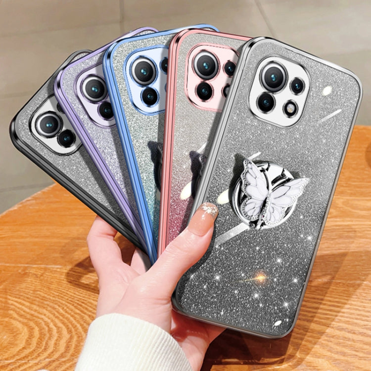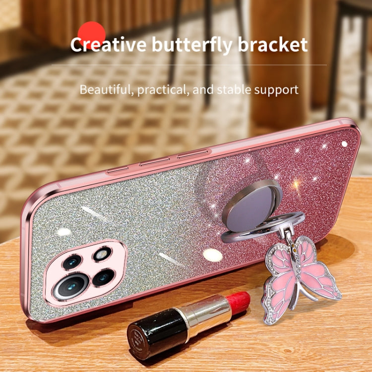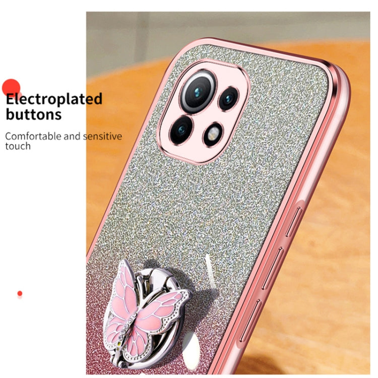 Plated Gradient Glitter Butterfly Holder TPU Phone Case, For Xiaomi Mi 11, For Xiaomi Poco M3, For Xiaomi Poco X3, For Xiaomi Mi 10 Lite