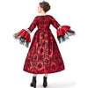 5. The retro black stitching pattern extends downwards, with a visual effect, the burgundy background color satin is bright and eye-catching, smooth and shiny, and the black flocking pattern is gorgeously embellished