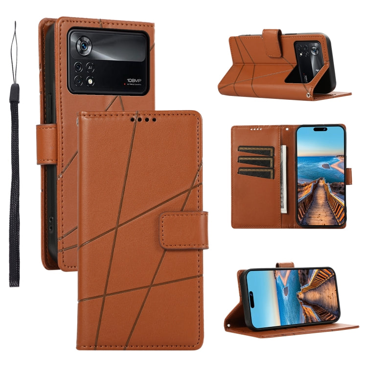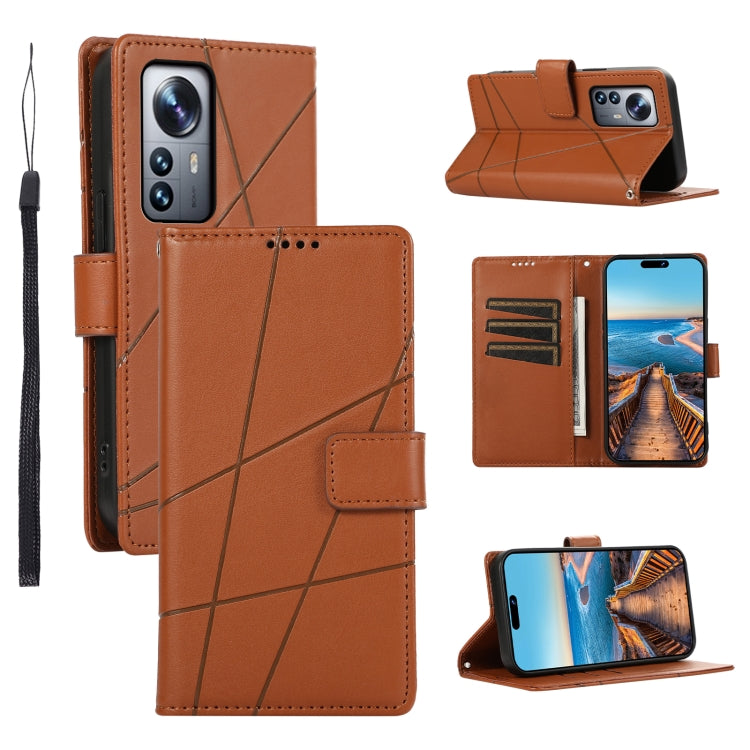 PU Genuine Leather Texture Embossed Line Phone Case, For Xiaomi Poco X4 Pro 5G, For Xiaomi Redmi 10 2022, For Xiaomi 12 Ultra, For Xiaomi 12 Pro