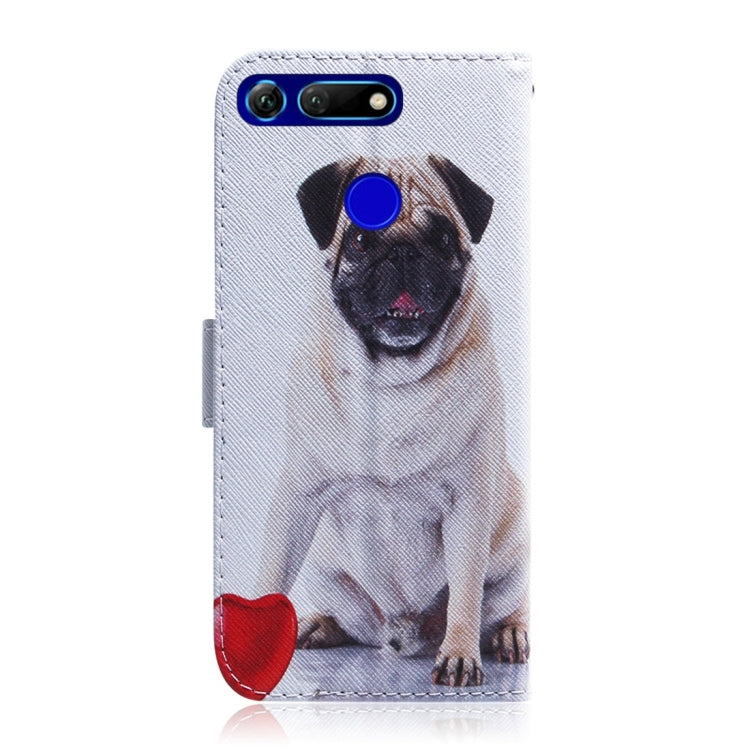 Pug Pattern Coloured Drawing Horizontal Flip Leather Case for Huawei Honor View 20, with Holder & Card Slots & Wallet, For Huawei Honor View 20