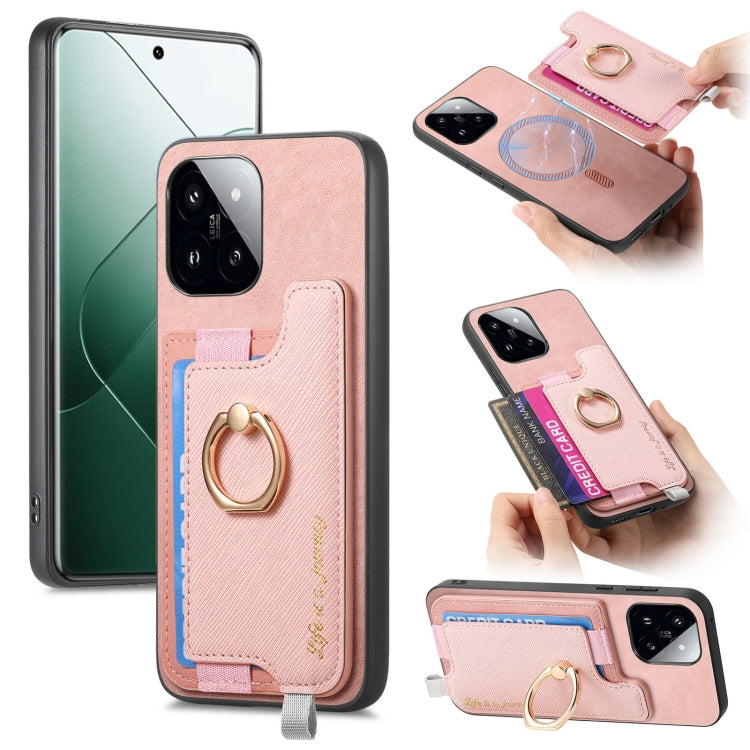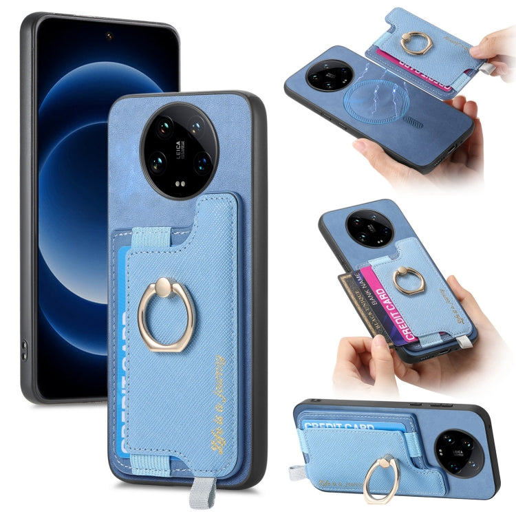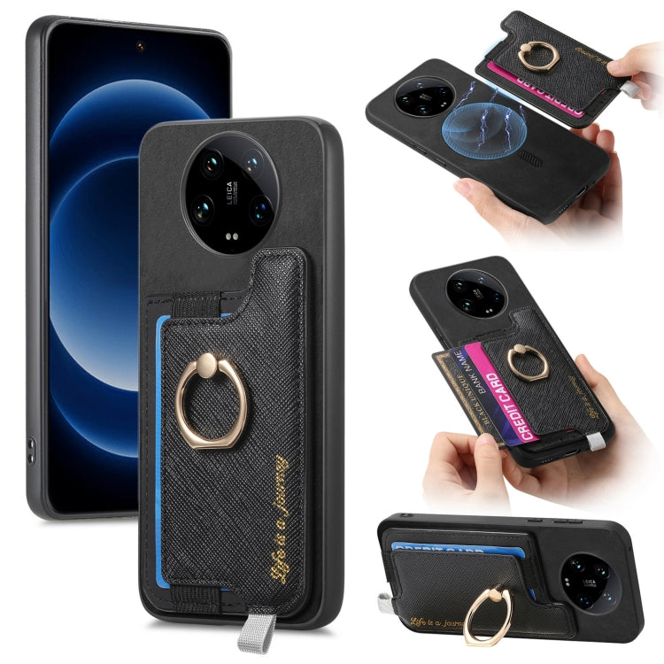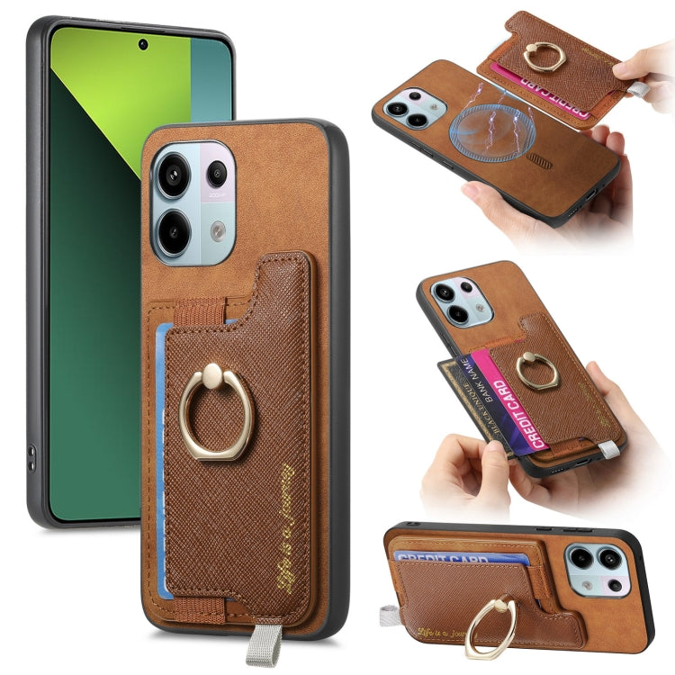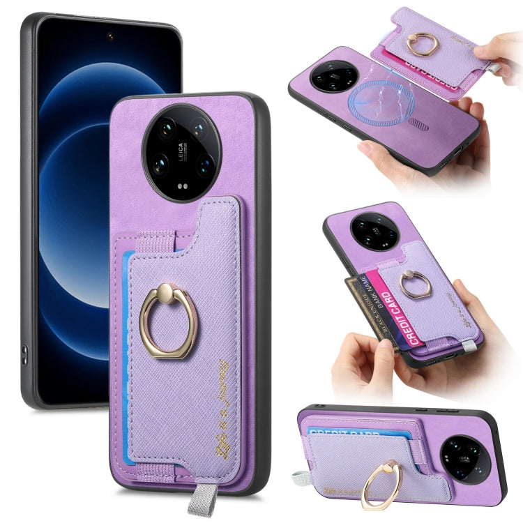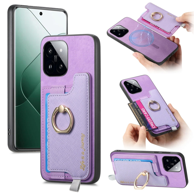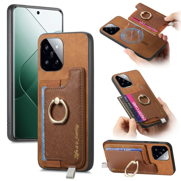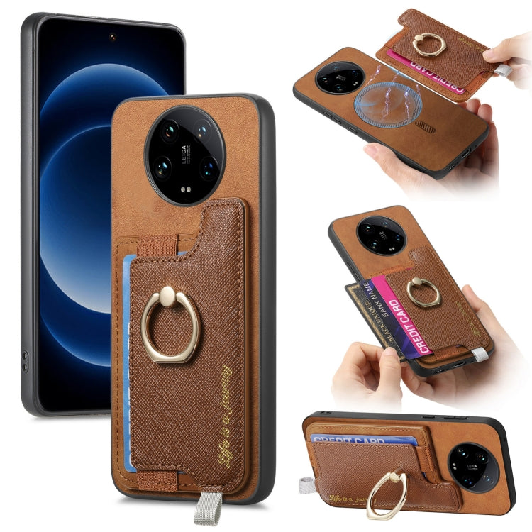 Retro Magsafe Cross Leather Ring Holder Card Bag Phone Case, For Redmi Note 13 Pro 5G / Poco X6 5G, For Xiaomi 14 Ultra, For Xiaomi 14 Pro 5G