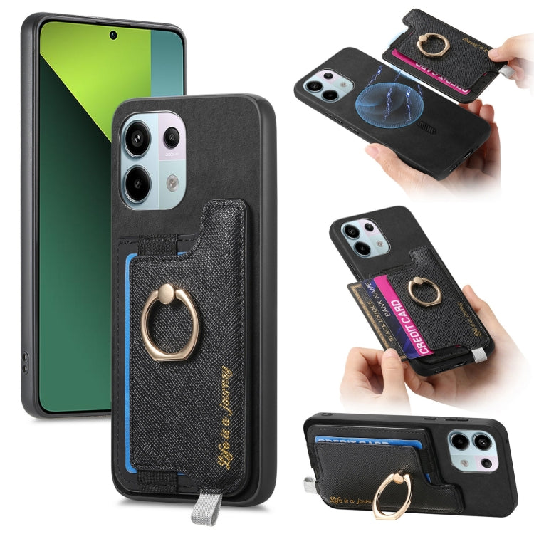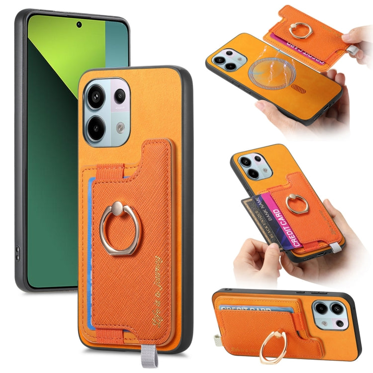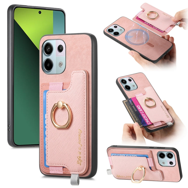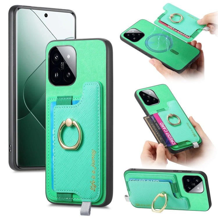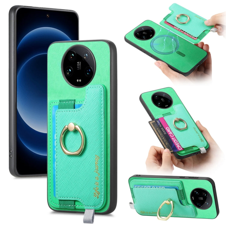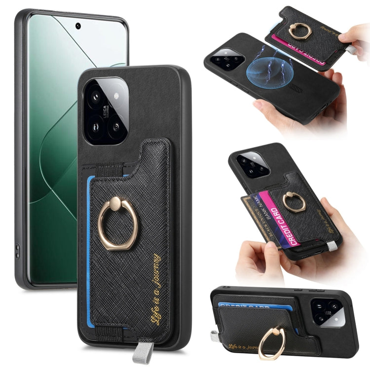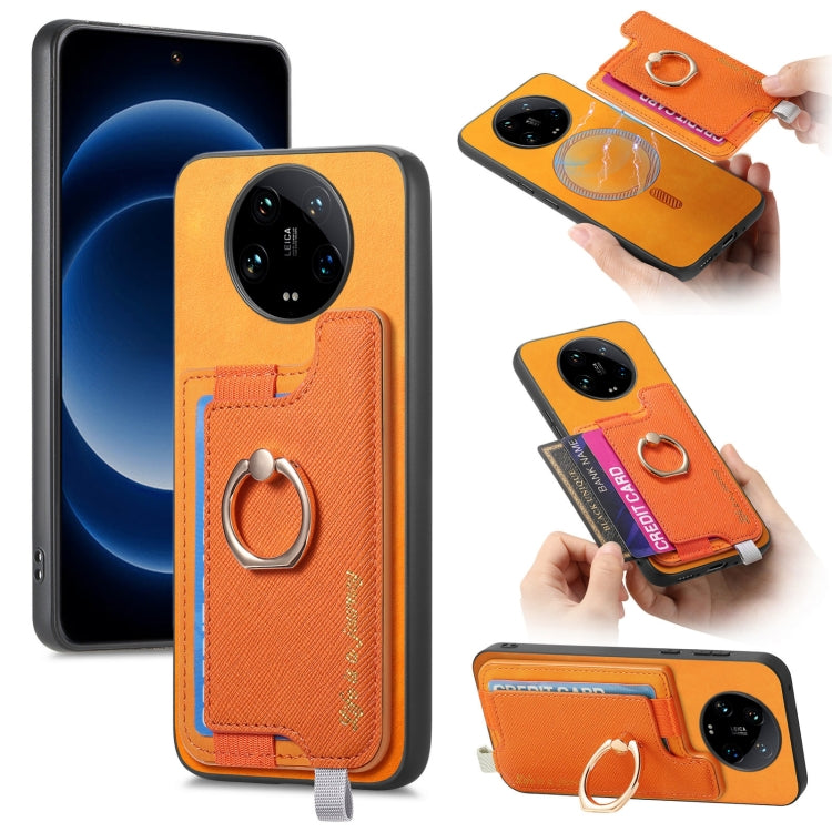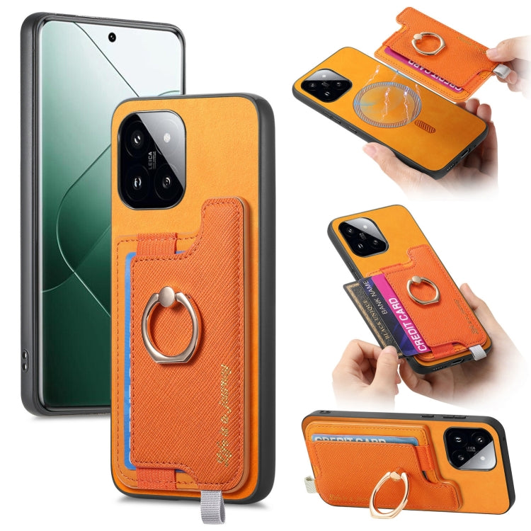 Retro Magsafe Cross Leather Ring Holder Card Bag Phone Case, For Redmi Note 13 Pro 5G / Poco X6 5G, For Xiaomi 14 Ultra, For Xiaomi 14 Pro 5G